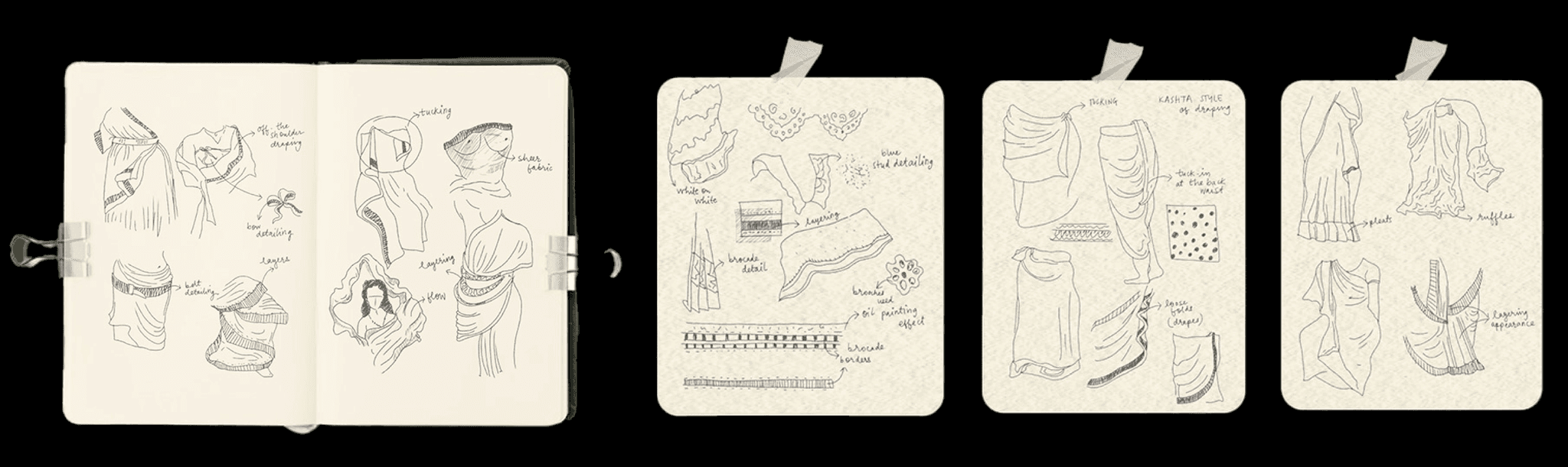 Inspired by the artistry of the renowned painter Raja Ravi Verma, Qala is a collection reimagining skirts with fresh, unparalleled designs and aesthetics. The signature style draws from the painter’s unique draping techniques and the timeless elegance of his subjects, blending traditional Indian silhouettes with contemporary fashion trends.